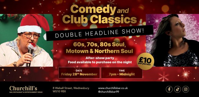 Christmas party Double headline show of Comedy with Our Trace and live singer Beverley with Club classics