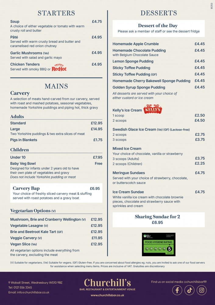 CARVERY MENU: